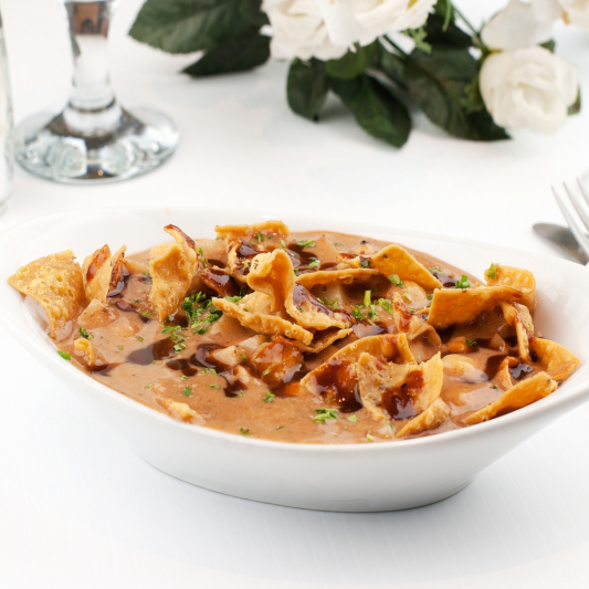 Crispy bread, chick peas, yogurt, potatoes & spices